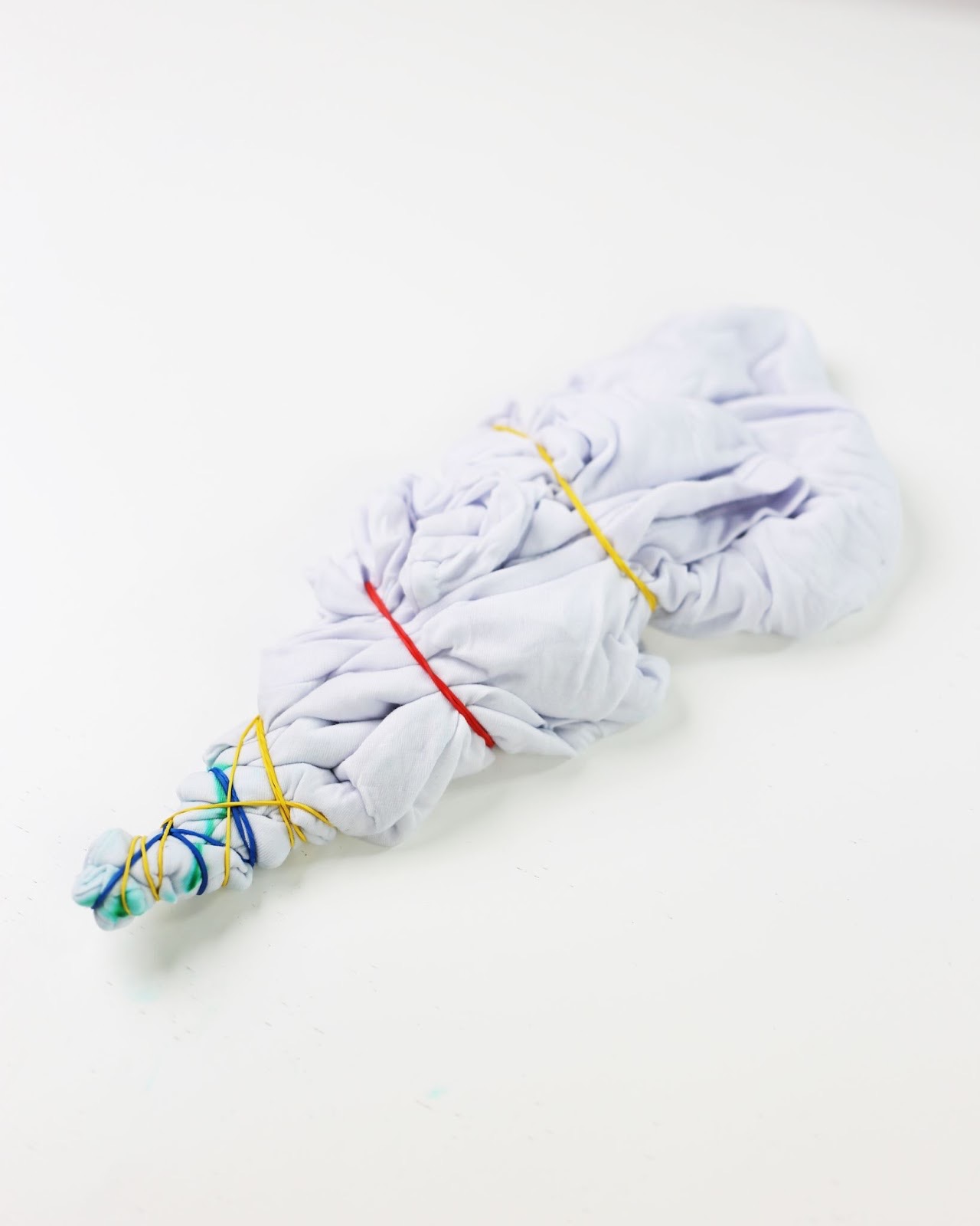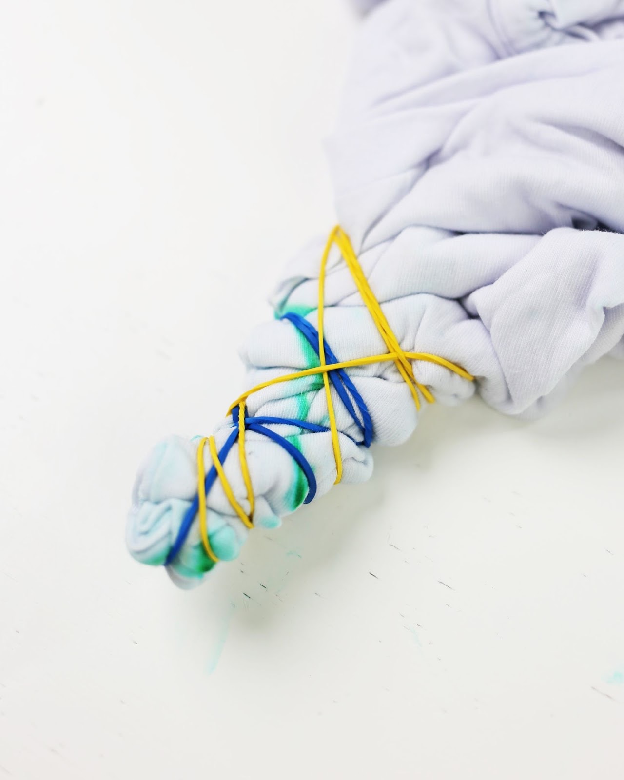 Зафиксируй резинками оставшуюся часть футболки.